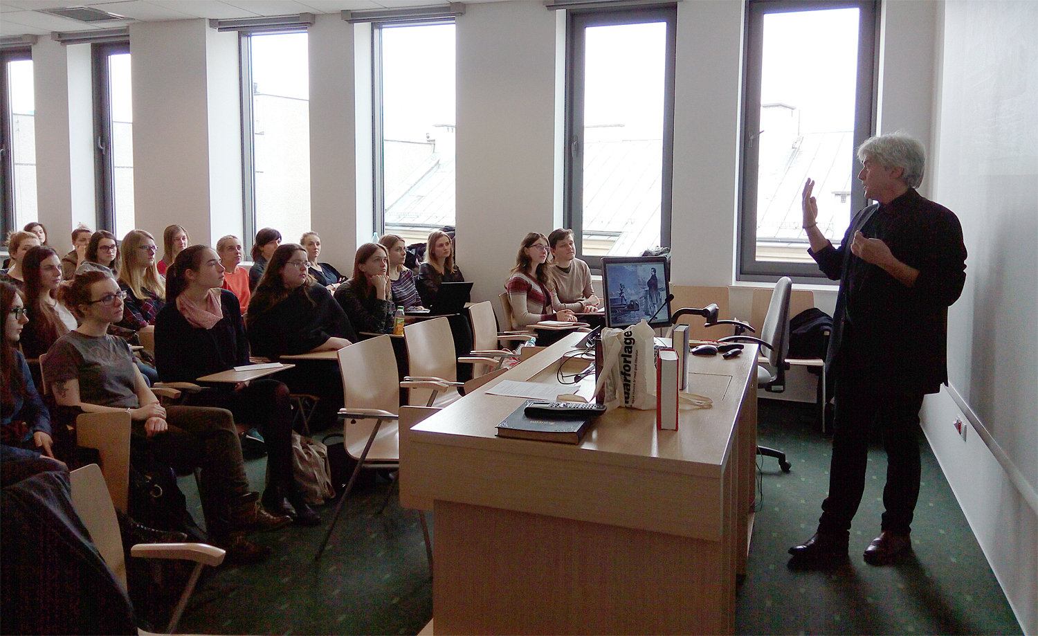 Forelesning for studenter på institutt for germanske språk på det Jagiellonske universitetet i Kraków, Polen. Tilstede var studenter og undervisere tilknyttet studier i svensk og norsk språk og litteratur.