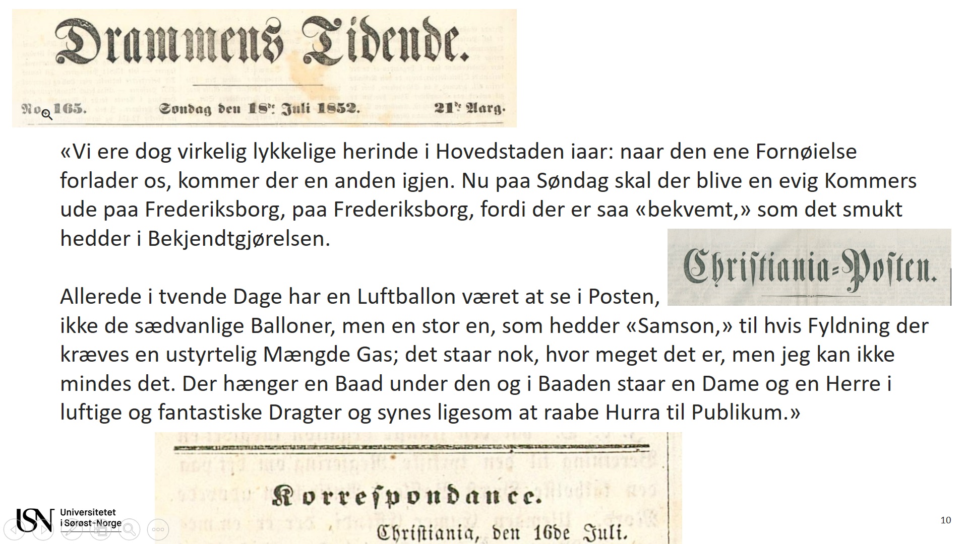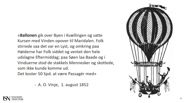 I aviser fra samtiden fremgår nemlig at flere bemannede ballongferder allerede hadde funnet sted et par tiår før 1870, og er altså skildret av blant andre Telemarkingen Aasmund Olavsson Vinje (1818-1870) i et par korrespondentbrev for Drammens tidende i juli og august 1852.