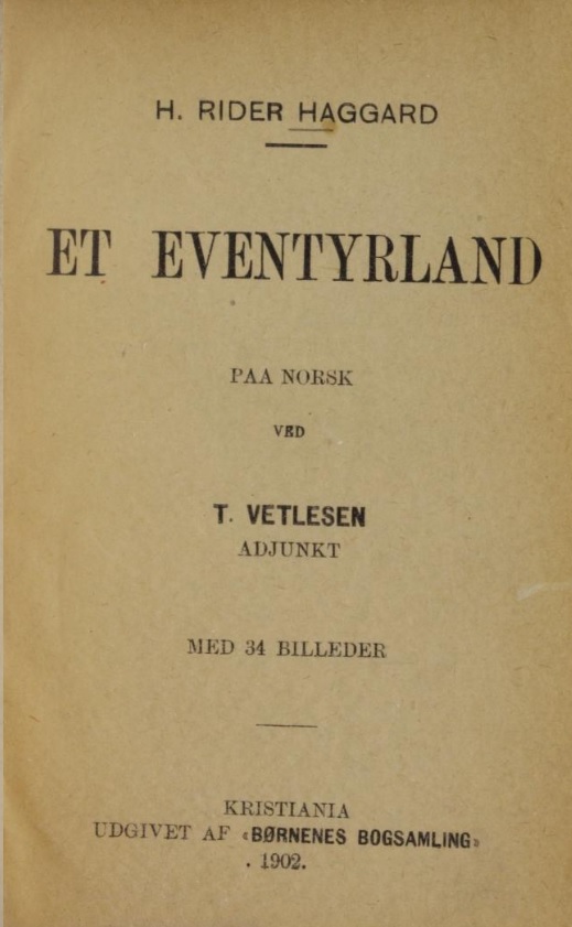 Nesten samtidig (1902) kom også Rider Haggards siste fortelling om eventyreren Alan Quatermain, allerede kjent fra Kong Salomos miner. Boken fikk en nærmest identisk tittel – Et Eventyrland – i norsk oversettelse. Men denne gangen gjaldt betegnelsen opplevelser i Afrika, ikke Eurasia.