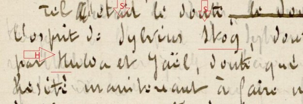 I vernes håndskrevne manus går det klart frem at han til begynne med skrev noe i retning av Skog og etterhvert Stog – noe som også er kommentert av forlaget (1885) – men senere endret til Hog uten protester fra forfatteren.